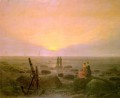 Friedrich studied at the Academy in Copenhagen from 1794 to 1798 under Jens Juel, among others. He then, went to Dresden as a painter of theatrical scenery. From 1800 on he met many of the important artist of the German romantic movement in Dresden, including the poet Novalis (1772-1811), as well as the painters Georg Friedrich Kersting and Carl Gustav Carus. It was not until 1807 that he turned to canvas painting. In 1810 he became a member of the Berlin Academy, and in 1816 joined the Dresden Academy, and in 1816 joined the Dresden academy. Friedrich did not strive to create an objective representation of nature in his landscapes. Inspired by Philip Otto Rung, He instead sought to translate personally experienced metaphysical thoughts and perceptions into his paintings, Friedrich also produced extensive written work. His Paintings include The Cross in The Mountains (The Tetschen Alterpiece), 1808, Monastry in Oak Forrest, 1809/10, Wanderers over the Sea of Fog, 1818,