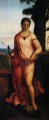 Giorgione (c. 1477 Castelfranco, Veneto-1510 Venice), born Giorgio da Cstelfranco and also known as Giorgio Barbarelli, was an important painter of the Venetian High Renaissance. He was probably trained along with his younger friend Titian in the workshop of Giovanni Bellini. There Giorgione developed his own influential style in the painting tradition of Vittorio Carpaccio, Antonello da Messina, and Leonardo da Vinci. as well as of the Dutch painters. He increasingly rejected the use of contour lines to regulate color transitions, thereby emphasizing the true appearance of things. This allowed him to represent figures freely moving in space, as well as the atmospheric effects of landscapes. Among the artist's major works are The judgement of Solomon, c. 1500, Galeria degli Uffizi, Florence; The Three Philosphers, c. 1505, Kunsthistorisches Museum, Vienna; and Portrait of a Woman (Laura), 1506, Kunsthistrosches Museum, Vienna.