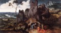 Joachim Patenier (c. 1485 Dinant or Bouvignes 1524 Antwerp), also known as Joachim Patinir, was accepted into the St. Luke's Guild of Antwerp as a master in 1515, but the location of his apprenticeship remains unknown. In 1521/22 he initiated contact with Albrecht Durer, who had great respect for the Antwerp artist. The totality of Patenier's oeuvre consists of around 20 paintings, none of which are dated, and only five are signed-chiefly religious narrative paintings with panoramic landscape views. His generic landscapes, marked by strange rock formations, are important to the development of the independent genre of landscape painting. Significant works by the artist include The Flight into Egypt, Koninklijk Museum voor Schone Kunsten, Antwerp; The Sermon of John the Baptist, Musees Royaux de Beaux-Arts, Brussels; and The Temptation of St. Anthony, Museo del Prado, Madrid.